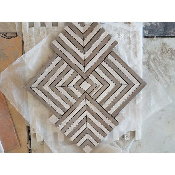 Natural Stone Basket Weave Tile , Polished White Grey Stone Mosaic Tiles Images |